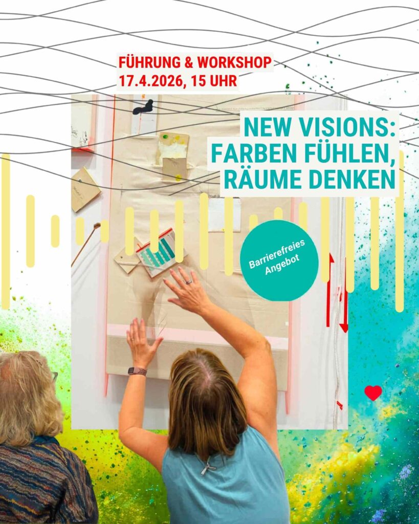 Gemeinsam mit der Künstlerin Sarah Iris Mang begeben wir uns auf eine poetisch-spielerische Entdeckungsreise durch ausgewählte Werke der Ausstellung: Die Arbeiten zeigen, wie Malerei und Zeichnung über ihre eigenen Grenzen hinausgehen, sich im Raum entfalten und neue Ausdrucksformen finden. In der gemeinsamen Betrachtung treten wir in einen lebendigen Dialog mit der Kunst, tauschen Wahrnehmungen aus und machen unterschiedliche Perspektiven erfahrbar. So entsteht ein Raum für Begegnung, Freude und neue Sichtweisen.