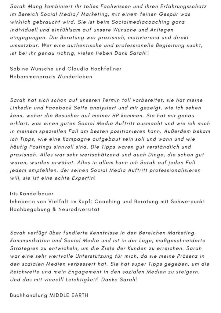 Das sagen Kund:innen zur Beratung und zum Coaching